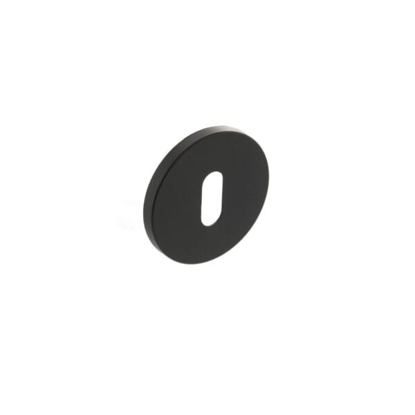 Matt Black Millhouse Brass Key Escutcheons on 5mm Slimline Round Rose – (MHSRKMB)