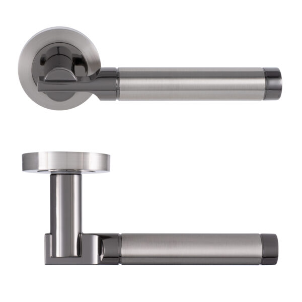 Elettra Designer Lever on Rose – Satin Nickel / Black Nickel – (63114)