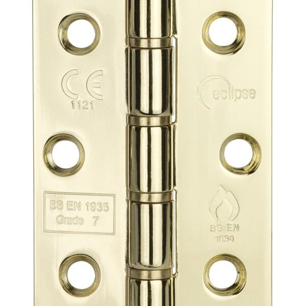 102x76mm Grade 7 Stainless Steel Washered Hinge PB | Door Hinge Hardware – Heavy – Duty, Smooth Action, Polished Brass (14886)