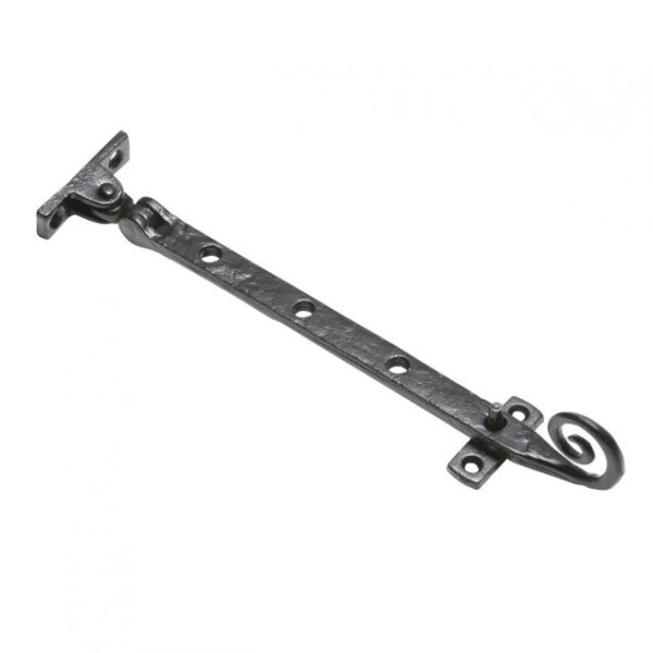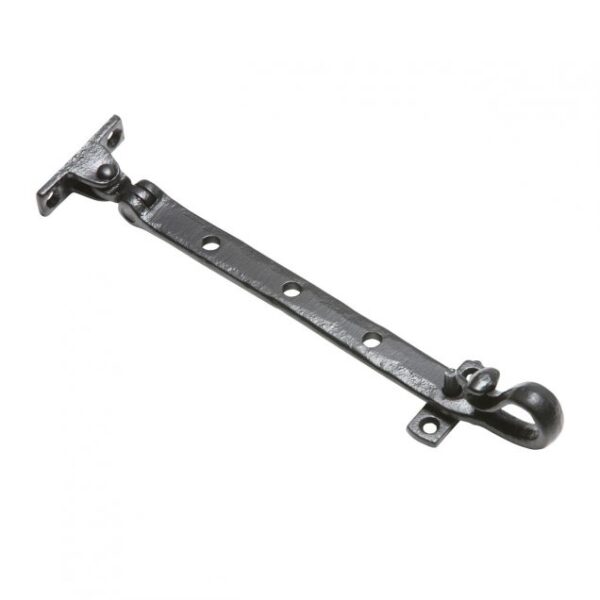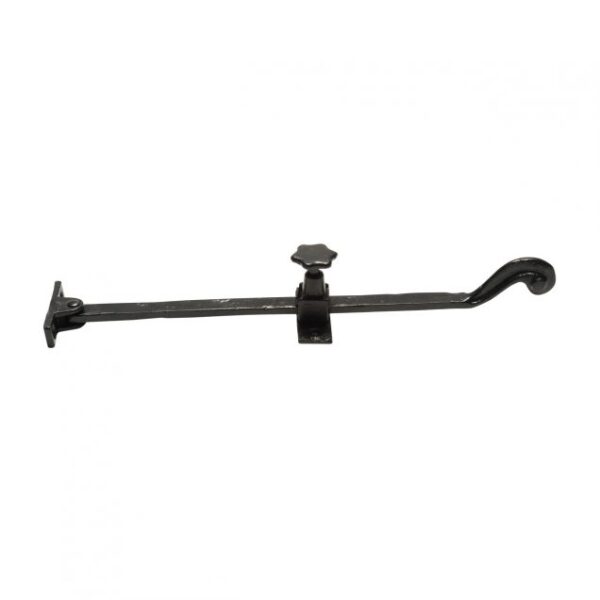 This Kirkpatrick 1184 Shepherd's hook casement stay is made from durable malleable iron, offering a high-quality, solid construction with a antique black finish.