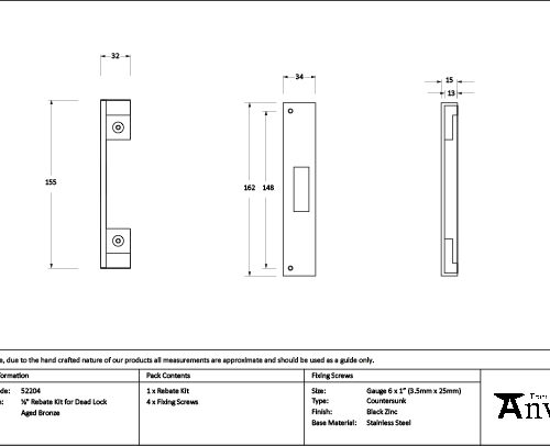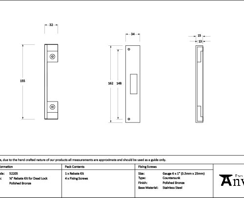 Polished Bronze ½” Rebate Kit for Euro Dead Lock | 51474
