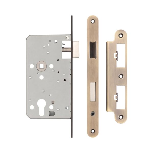 72mm Antique Brass Din Euro Deadlock Radiused 60mm Backset