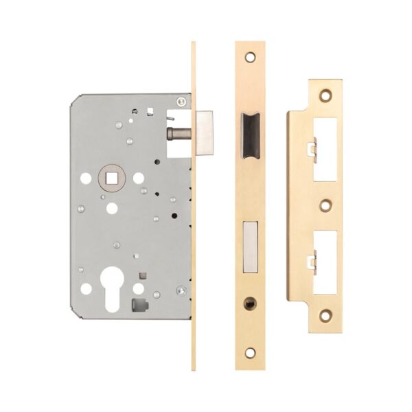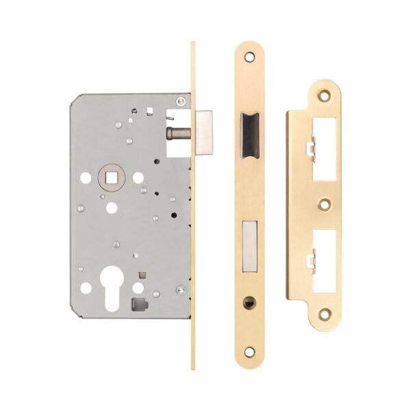 72mm Satin Brass Din Euro Escape lock Radiused 60mm Backset