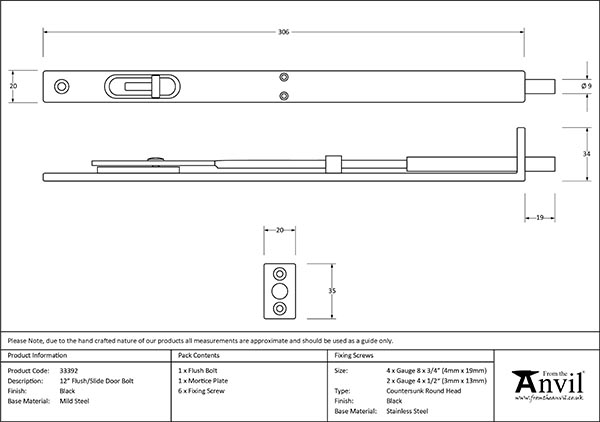 We have an extensive range of door, window, French, and flush bolts, ranging from 4″ to 12″. This flush bolt features a strong spring mechanism and is suitable for use on sliding/folding door systems. Usually used to secure a slave door, this bolt requires rebating into the surface or edge of a door. Maximum depth of cut out: 18mm. Supplied with matching SS wood screws. Our classic Black finish is the perfect choice for those looking to make a bold statement. This finish is best suited to traditional properties and interiors, and looks fantastic when paired with neutral colourways and natural materials such as timber, stone and tile. Our Black products have a distinctive, subtle sheen; hand forged from mild steel this finish are extremely low maintenance, offering excellent corrosion resistance and durability as a result of being powder coated, then baked in a high temperature oven during the final stages of manufacturing. An extremely low maintenance finish, ideal for use in kitchens and bathrooms, or externally where damp conditions are expected. Click to learn more about this Finish.