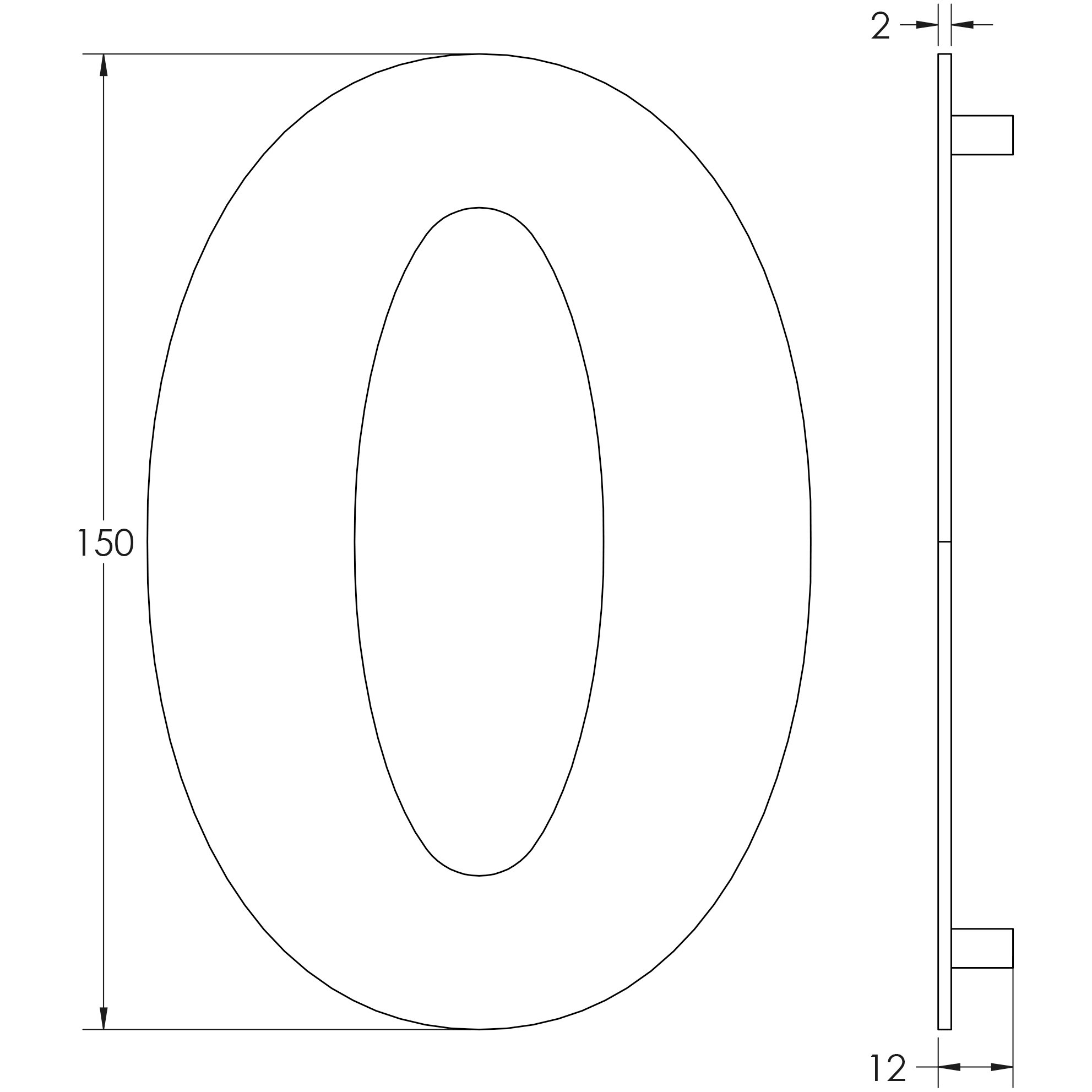 150mm Numerals SSS Finish 150mm Satin Stainless Steel No. 2