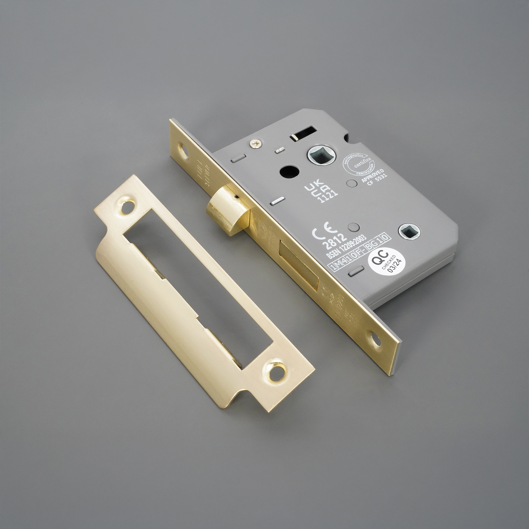 £6.00 ex. VAT | £7.20 inc. VAT3″ CE 3 Lever Bathroom Lock FD60 – Satin Brass