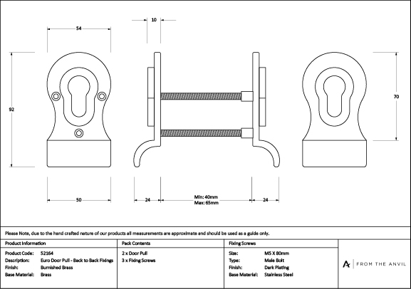 Our Euro door pulls can be used to push/pull doors into an open/closed position, and are designed to be fitted with our Euro cylinders. Our back-to-back Euro pull is forged from solid brass which highlights all the hand finished details of its design. A perfect choice for external doors, with many matching products available. Designed to match our Burnished Brass front door furniture to create a feature entrance. This door pull is used with a Euro profile lock in conjunction with a Euro cylinder. Maximum door thickness: 64mm. Sold with matching bolt-through fixings which are concealed from the external side of the door. Burnished Brass is an excellent choice for those wanting to add subtle luxury to their home interiors. Offering warmth without over dominating, this timeless finish complements a range of colours, and looks especially stunning when paired with paler shades. Hand forged from a base of solid brass, Burnished Brass is an excellent example of how our unique manufacturing techniques add further intrigue to the natural charm of the base material. Each product undergoes an accelerated ageing process, creating a dark patina before being placed into barrelling machines, giving them the beautiful burnished finish. During the final stages of manufacturing, a high quality, clear matt lacquer is applied for protection. Click to learn more about this Finish.