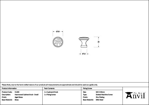 Aged Brass Hammered Cabinet Knob – Small | 51283