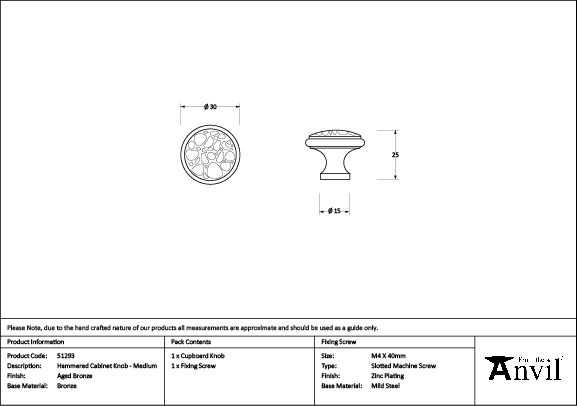 Aged Bronze Hammered Cabinet Knob – Medium | 51293
