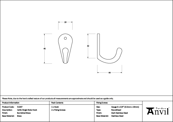 Can be used individually, or mixed and matched with similar hooks in the same/different sizes to create a feature piece.