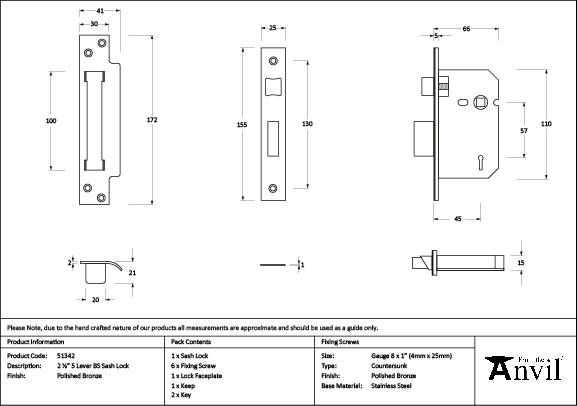 Polished Bronze 2½” 5 Lever BS Sash Lock | 51342