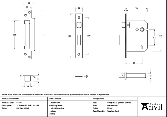 Polished Nickel 3″ 5 Lever BS Sash Lock KA | 51368