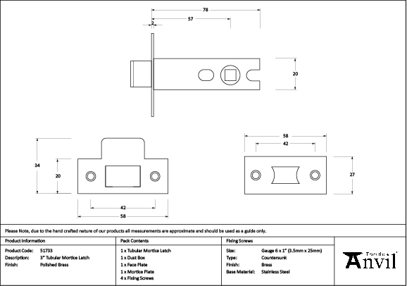 • Strike Plate: 58mm (L) x 34mm (W)