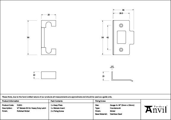Designed for use when fitting a heavy duty latch to rebated doors (doors that overlap one another when closed).