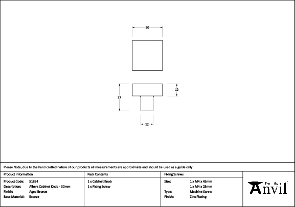 • Knob Size: 30mm x 30mm