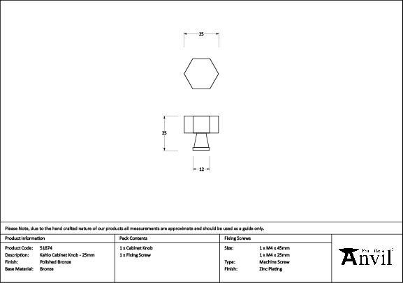 Polished Bronze Kahlo Cabinet Knob – 25mm | 51874