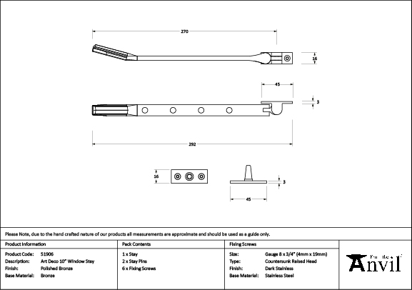 Our premium window stays are forged from solid bronze to create hardware that’s weighty and long-lasting.