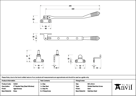 Aged Bronze 8″ Reeded Stay (Steel Window) | 52015