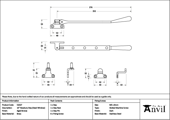 Aged Bronze 10″ Newbury Stay (Steel Window) | 52027