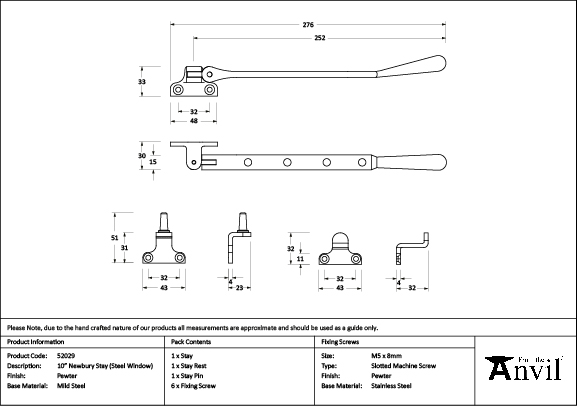 Pewter 10″ Newbury Stay (Steel Window) | 52029