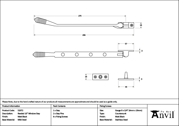 Matt Black 10″ Reeded Stay | 52072
