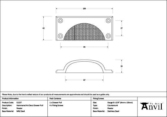 Designed to match the products in our Hammered Art Deco collection. This range suits contemporary and traditional settings alike and will add individuality to any project.