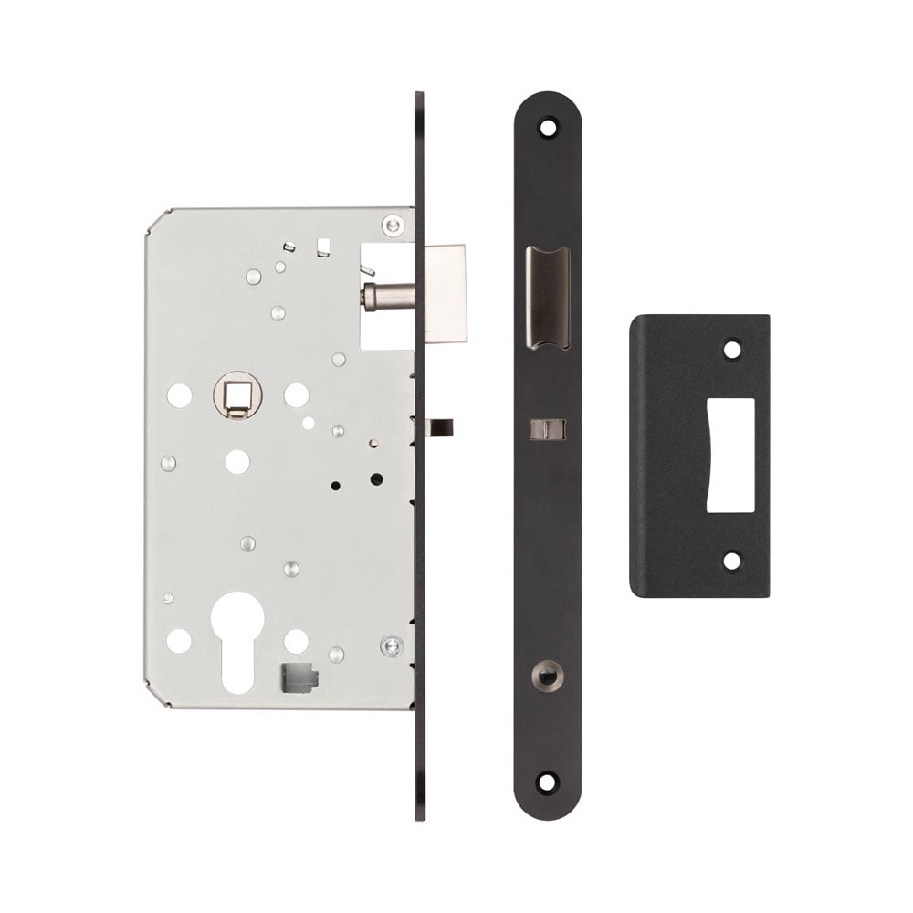 72mm Black Din Euro Nightlatch Radiused 60mm Backset