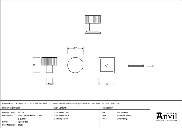 Aged Brass Judd Cabinet Knob – 25mm (Square) | 50379