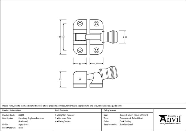 Aged Brass Prestbury Brighton Fastener (Radiused) | 83931