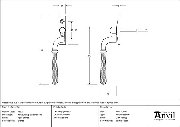 Aged Bronze Hammered Newbury Espag – LH | 45920