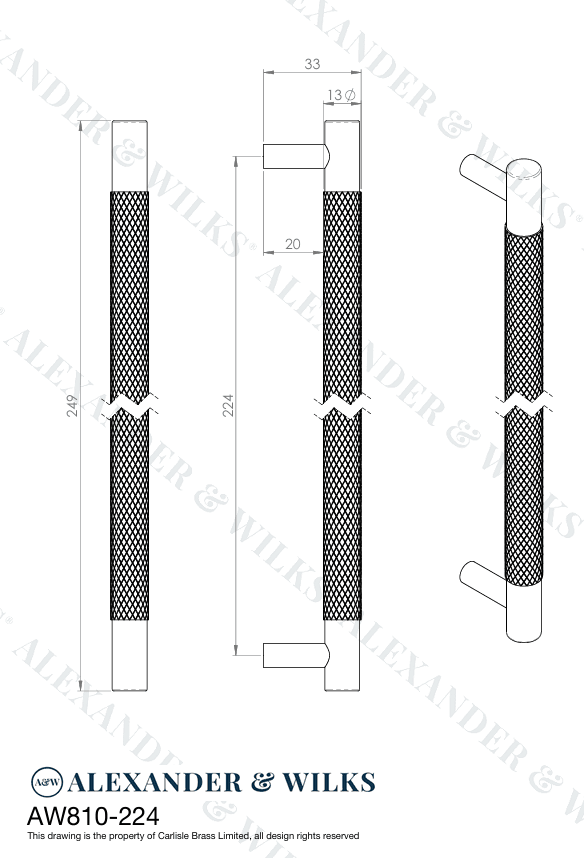 The Alexander and Wilks Brunel Knurled T-Bar Cupboard Pull Handle features a beautiful diamond knurled design, nodding to Britain’s industrial heritage. Knurling handles has their roots in the industrial age, where knurling was used to create texture, improving grip and giving the T-bar handles a tactile feel.