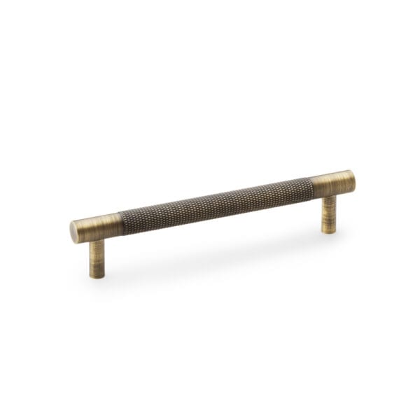 Alexander & Wilks Brunel Knurled T-Bar Cupboard Handle – Antique Brass – Centres 128mm