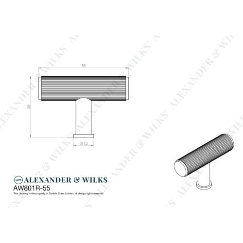 The Alexander and Wilks Crispin Reeded T-bar Cupboard Knob The tactile and textured reeded knob provides an easy grip.