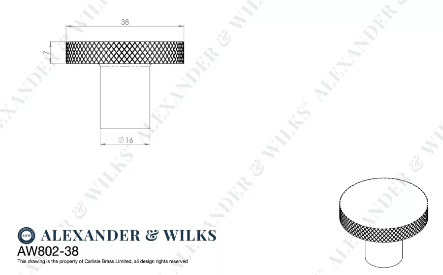 The brand new Alexander & Wilks Hanover Knurled Circular Cupboard Knob features a diamond knurled pattern, part of a wider collection of industrial-inspired Cabinet furniture.