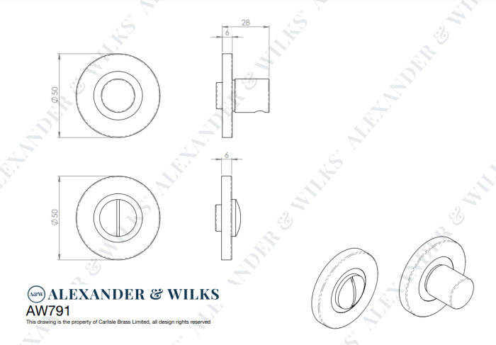 The Alexander and Wilks plain thumbturn and release feature a modern sleek and smooth facade on the thumbturn set against a smooth round rose, with a coin release on the opposite side to quickly and easily open doors in an emergency.