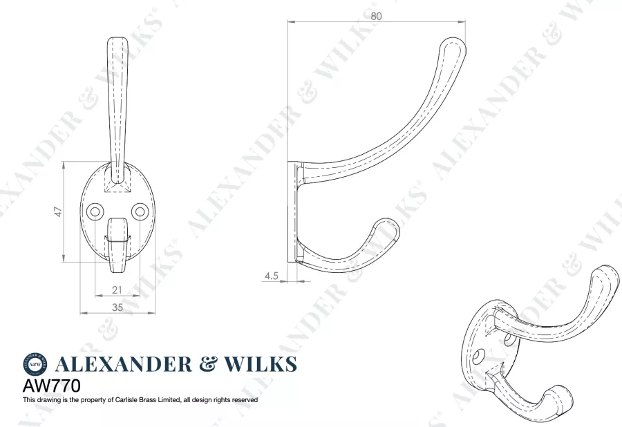 The Alexander and Wilks Victorian Hat and Coat Hook is a traditional style hat and coat hook on a circular-shaped backplate with two screwholes for quick and easy, visible screw fixing.