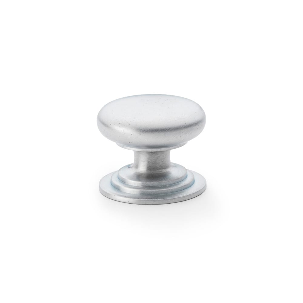 Alexander and Wilks – Waltz Round Cupboard Knob on Stepped Rose – Satin Chrome – Knob 38mm