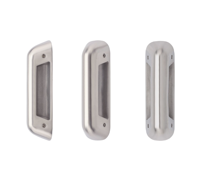 Grade 304 Stainless Steel, Total length: 150mm, 100mm C/C, Solid Stainless, Investment Casted Handle, GS = Grub Screw Side to make up Back-to-Back Set, Bolt Fixings supplied