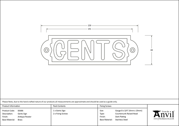 Antique Pewter Gents Sign | 83686