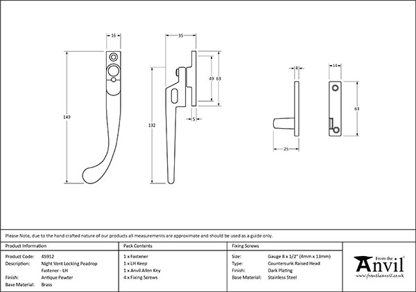 Antique Pewter Night-Vent Locking Peardrop Fastener – LH | 45912