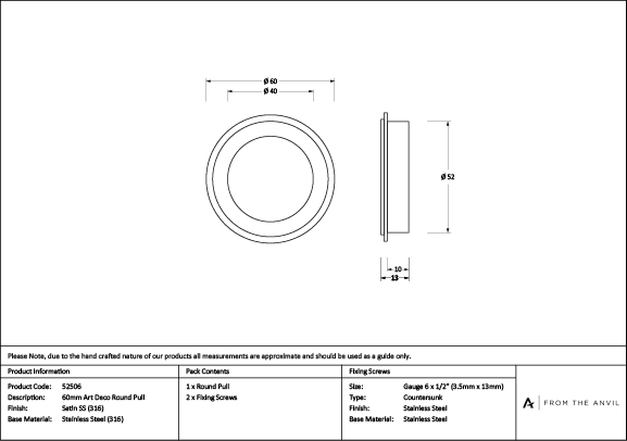 Satin Marine SS (316) 60mm Art Deco Round Pull | 52506