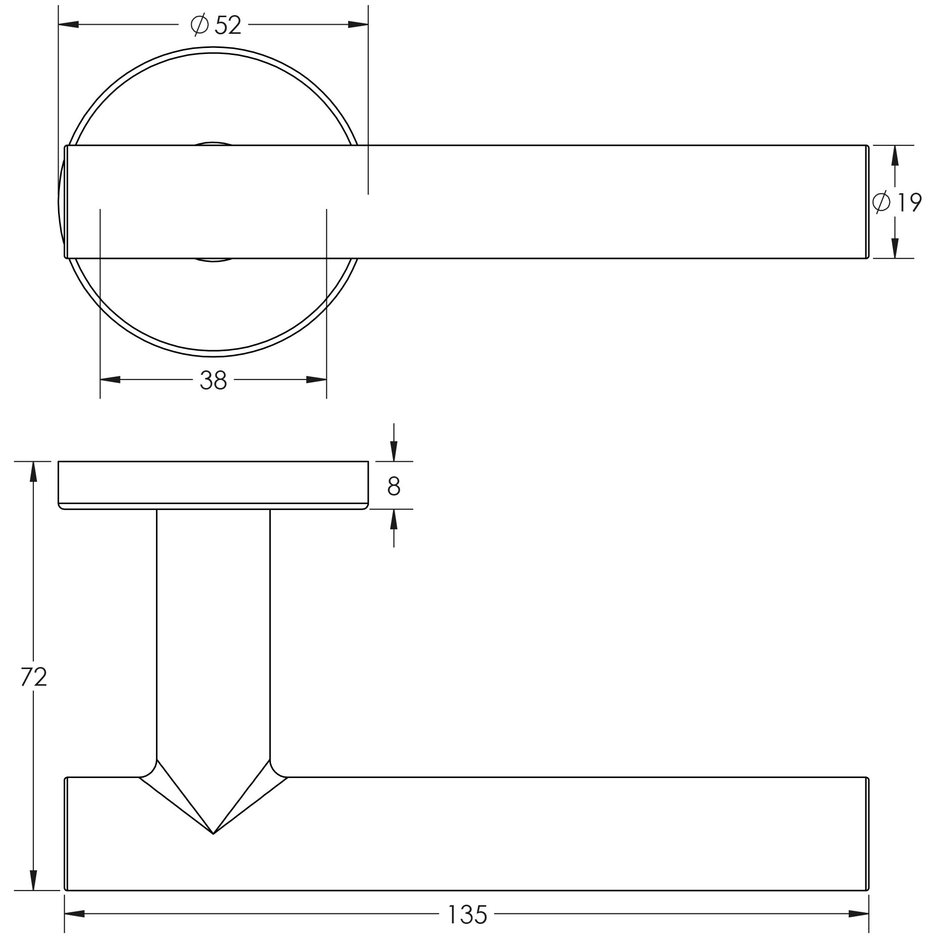 • Suitable for internal applications across both residential and commercial settings. Mechanical Warranty: 10 Years Dimensions Lever Diameter: 19mm Projection: 72mm Rose Diameter: 52mm Rose Thickness: 8mm Tailored quotes are available for larger commercial projects — contact our team to discuss specifications and pricing. STANDARDS & CERTIFICATIONS.