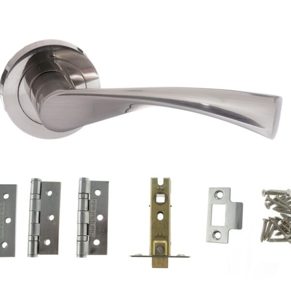 Upgrade your interior doors with the Satin Nickel/Polished Brass Latch Pack. This essential door hardware kit combines a smooth tubular latch with premium lever handles and hinges for a consistent, modern look throughout your home.
