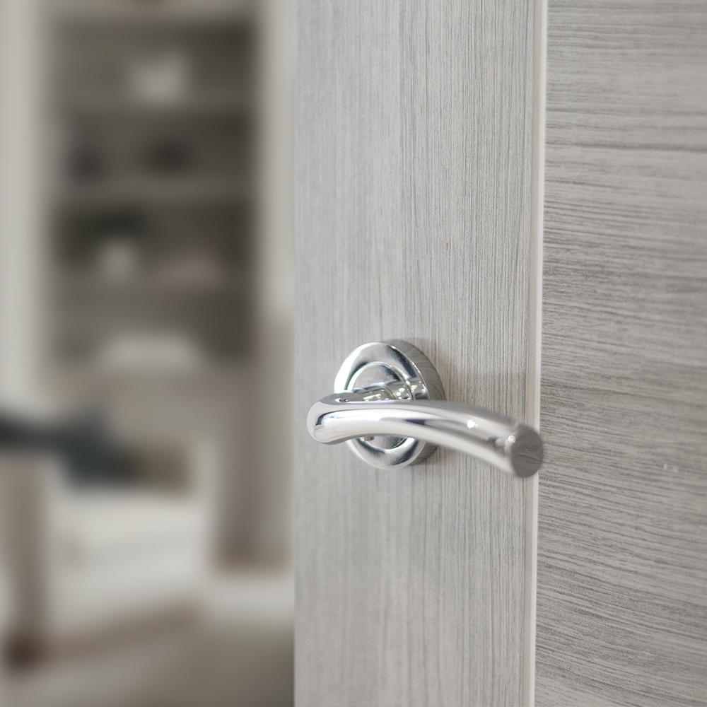 Upgrade your interior doors with the Polished Chrome Latch Pack. This essential door hardware kit combines a smooth tubular latch with premium lever handles and hinges for a consistent, modern look throughout your home.