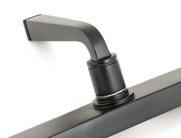 Our Avon lever handles are From The Anvil’s signature design and are loved for their timeless simplicity. Each lever is hand-hammered into shape by our expert Blacksmiths to give it a contemporary, yet individual, edge. Designed to match the products in our Avon range. This handle has a strong double spring incorporated into its stylish boss design which provides both elegance and practicality. Lever handle for external doors where multi-point locking is not required, generally fitted to the slave door on French doors. Set includes an internal and external slimline lever latch handle. Suitable for use with a French door kit in conjunction with a slimline lever espag. lock set and Euro cylinder. Supplied with matching SS bolt through fixings. Aged Bronze is a versatile finish that’s equally suited to interiors featuring lighter shades for bold contrast, or darker hues for a more subtle aesthetic. One of our most popular finishes favoured for its dark, matte richness with distinctive warm undertones unlike any other finish in our range. Our Aged Bronze products are made using solid bronze containing a minimum of 85% copper. The process used to age the metal is what gives it a dark, dramatic appearance, before a durable matt lacquer is applied during the final stages of manufacturing to help protect and preserve its distinctive tones. Click to learn more about this Finish.