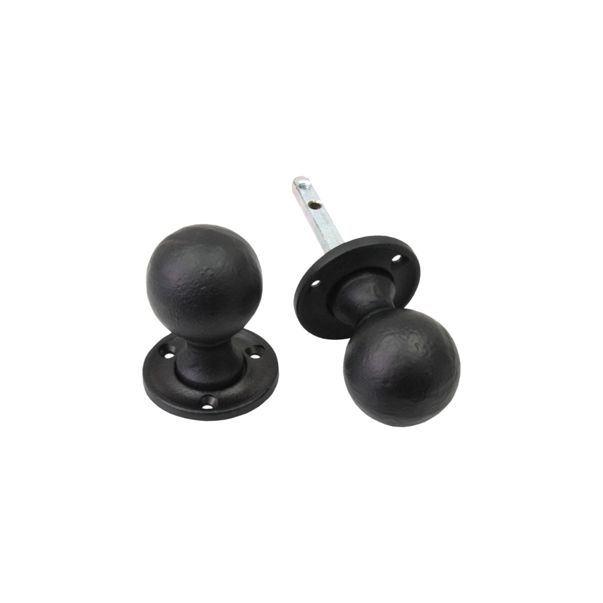 Our antique ‘Ball Rim Door Knob’ is cast from high quality iron material, giving it durability, style, and an easy assembly. Protected with a high density zinc rich undercoat to increase durability, with a UV colour fast black powder coated finish with a stainless steel inner mechanism for increased endurance. The clean ball shape for a comfortable grip which blends well with any traditional decor. It maintains great flexibility, as it can be used as a mortice knob since it’s unsprung and comes in pairs.