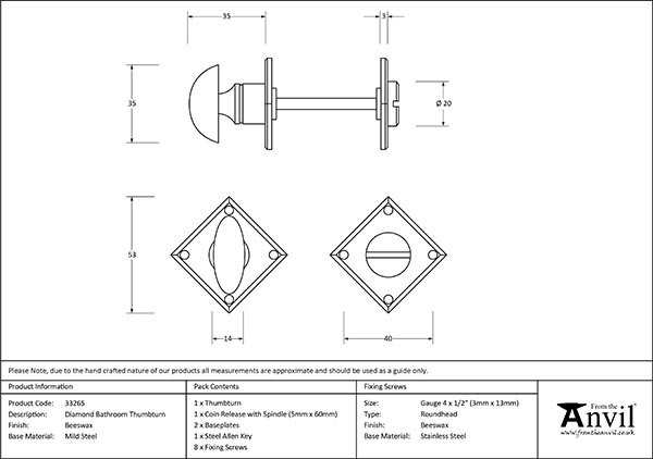 • Thumbturn Size: 36mm x 15mm