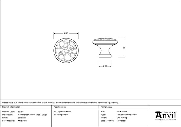 Our Hammered cupboard knobs are part of our Blacksmith range.