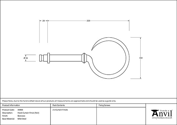 Our extensive collection of curtain furniture allows you to fully furnish your home with matching From The Anvil products, down to the finest details. These finials add a decorative finishing touch to our range of curtain poles. Our finials can also replace the standard end caps provided with our large pull handles, allowing coordination throughout your home. Supplied as a pair. Beeswax is our most traditional finish with a soft, natural aesthetic featuring subtle blue and deep red ochre tones which are preserved in the steel during the manufacturing process; this finish is ideally suited to older, traditional dwellings and cottage interiors. Beeswax products are hand forged from mild steel. After forging, the subtle colours in the metal are preserved by dipping the products in hot beeswax, resulting in the soft, matte richness and offers excellent protection when the products are fitted internally. Click to learn more about this Finish.