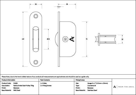 Beeswax Radiused Sash Pulley 75kg | 52482